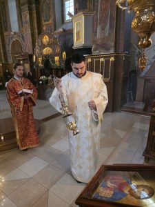 Радост данашње Свете Литургије, 15.04.2026. године, у храму Вазнесења Господњег, употпунили су драги гости из Грчке Православне Цркве – архимандрит Елефтериос (Балакос), заједно са хришћанском омладинском организацијом, братством теолога „Зои“.